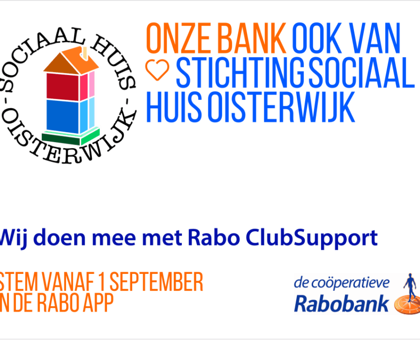 Dit jaar doet Stichting Sociaal Huis Oisterwijk ook weer mee met Rabo ClubSupport.